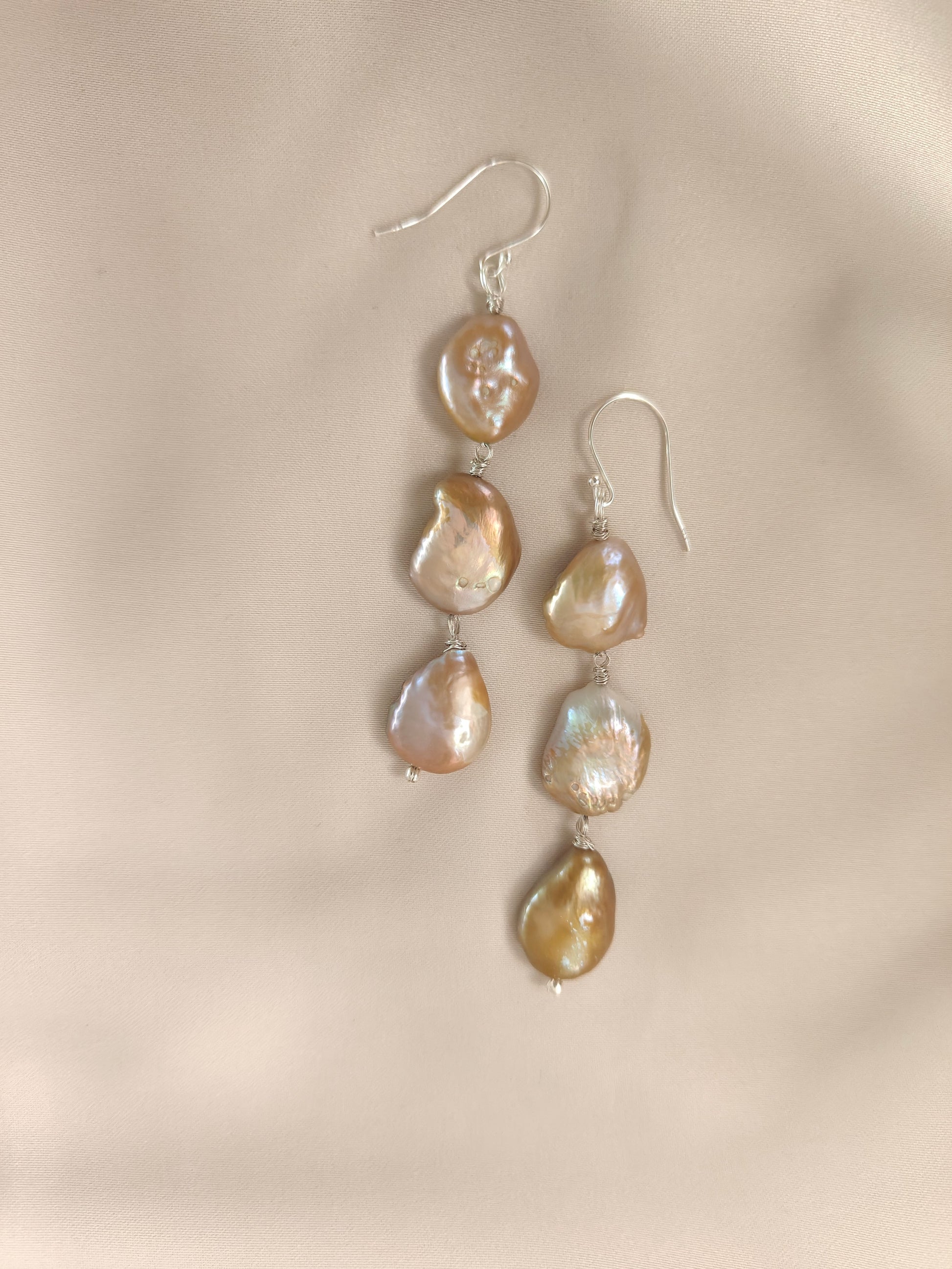ERPFW007 Golden Glow Baroque Pearl Dangle Earrings