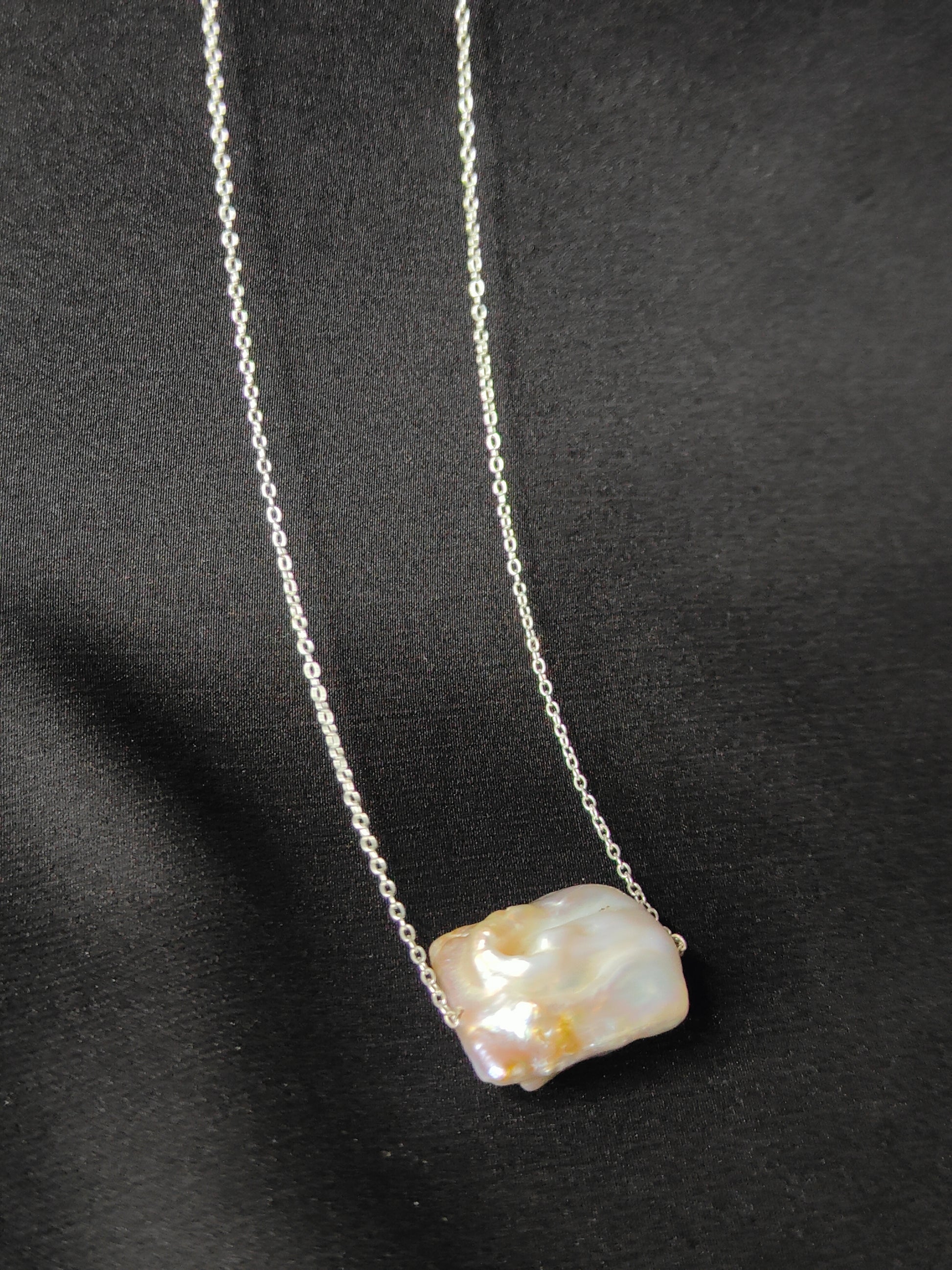 Unique square baroque pearl chain necklace featuring beautiful pearls.