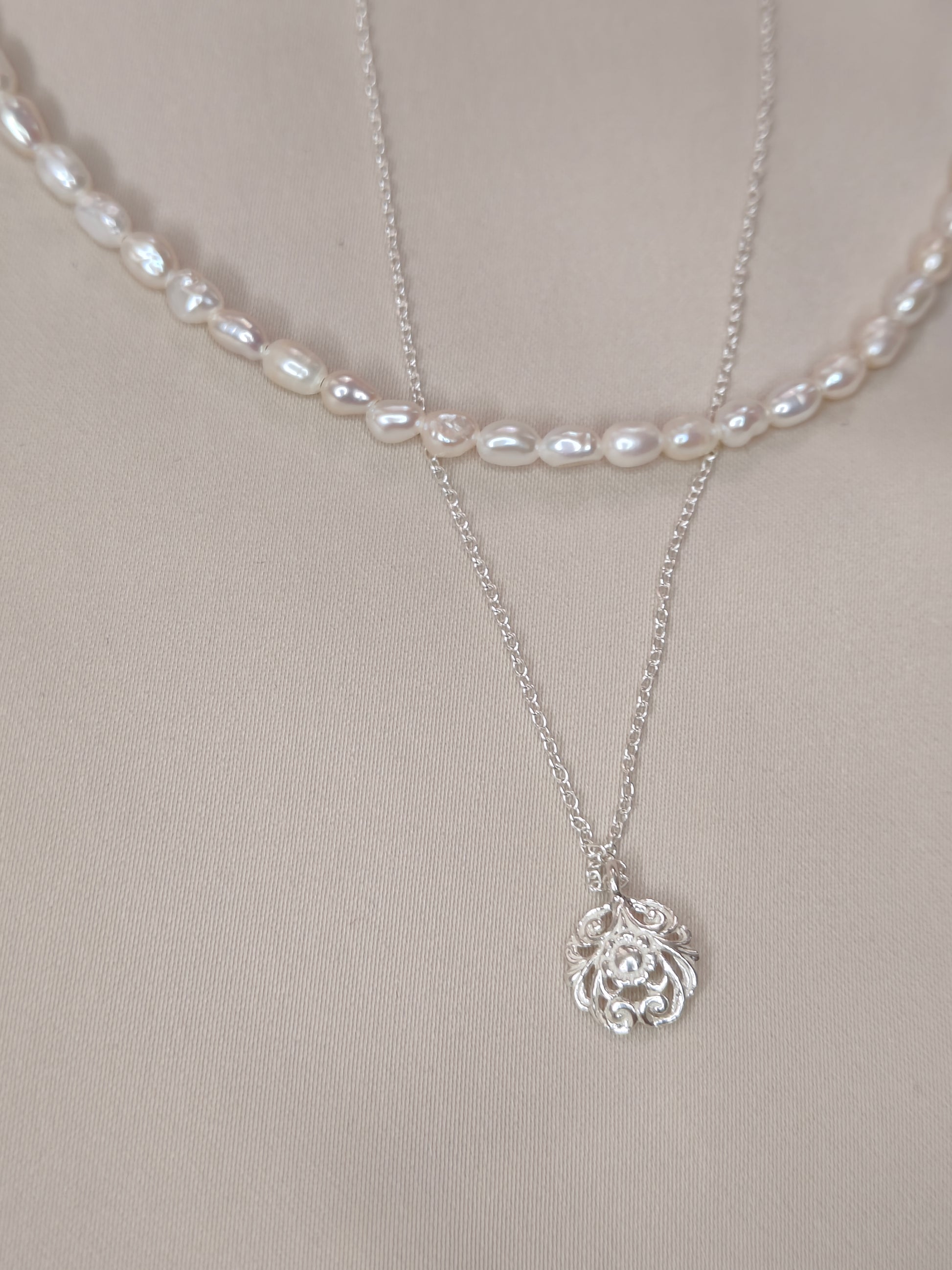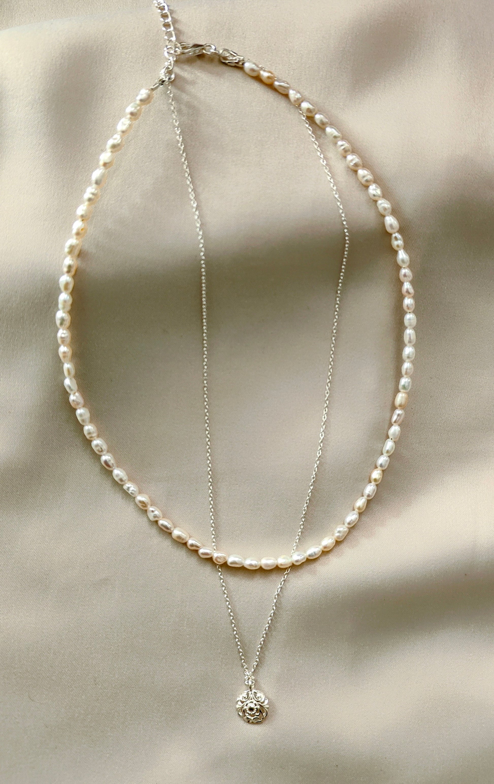 Material - fresh Water Rice Pearl with Sterling Silver chain with charm