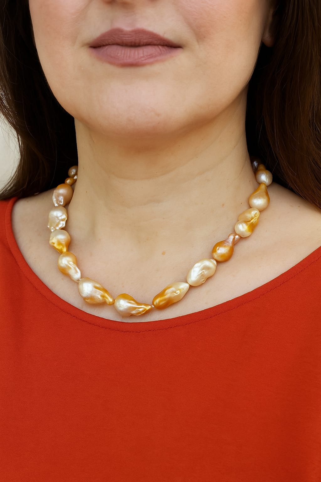 PFW024 Golden Grace - Golden tone Baroque Pearl Necklace
