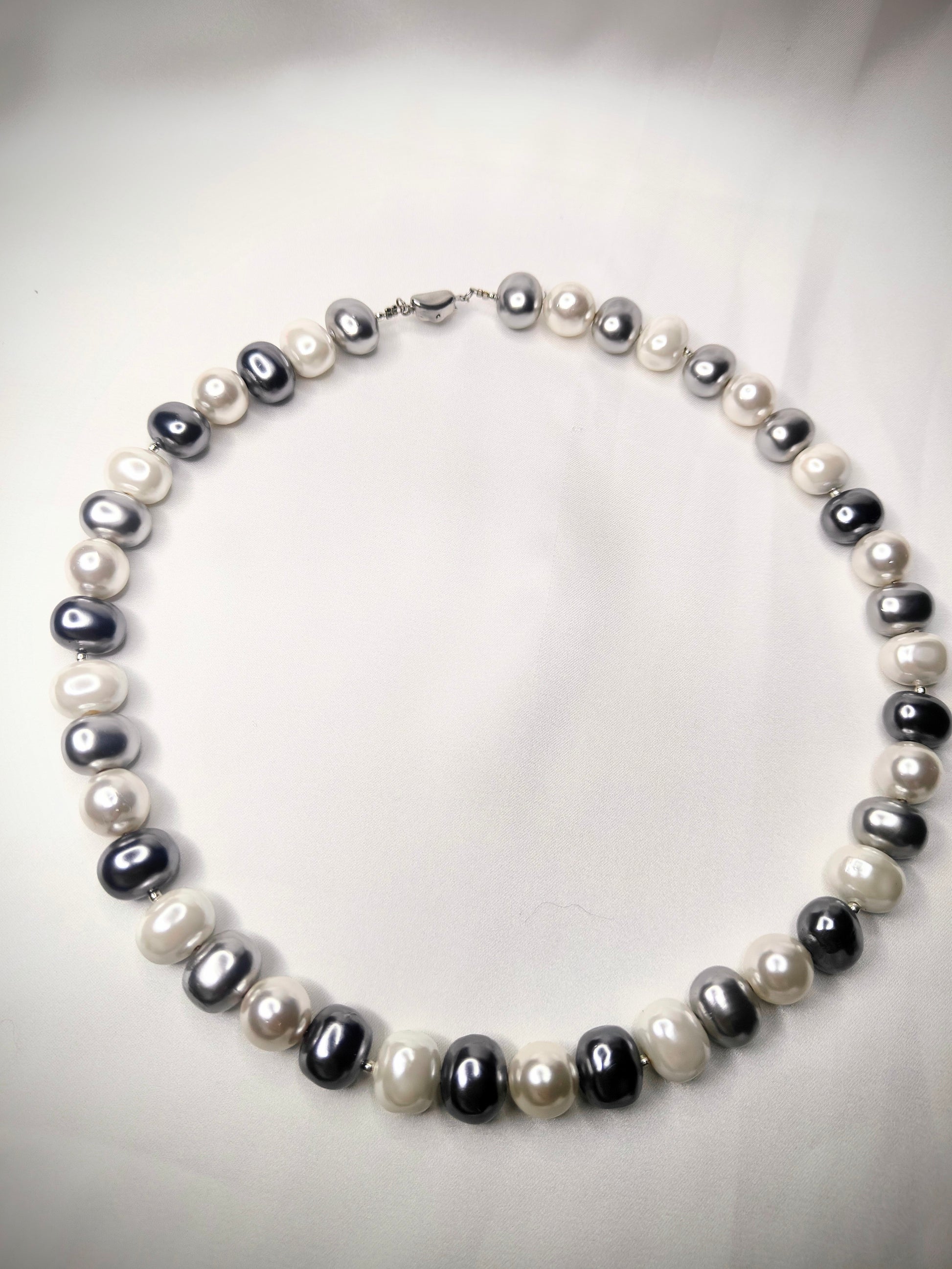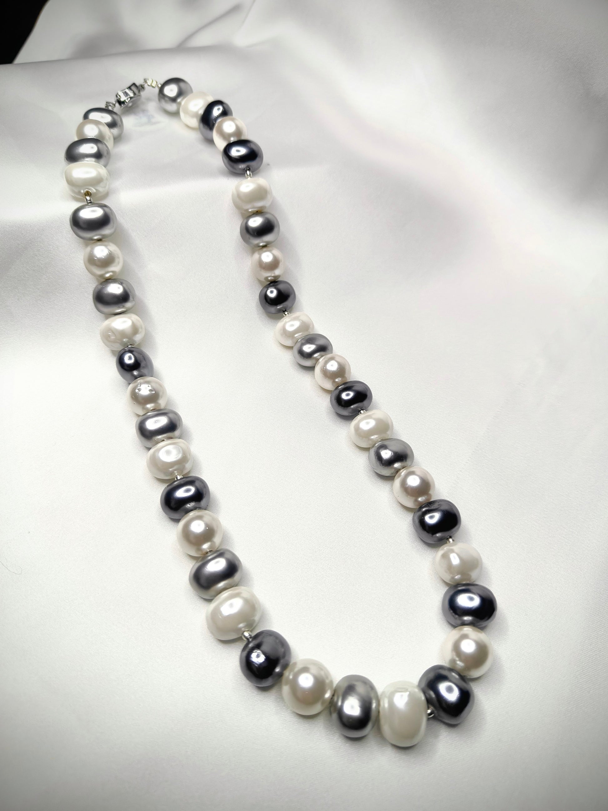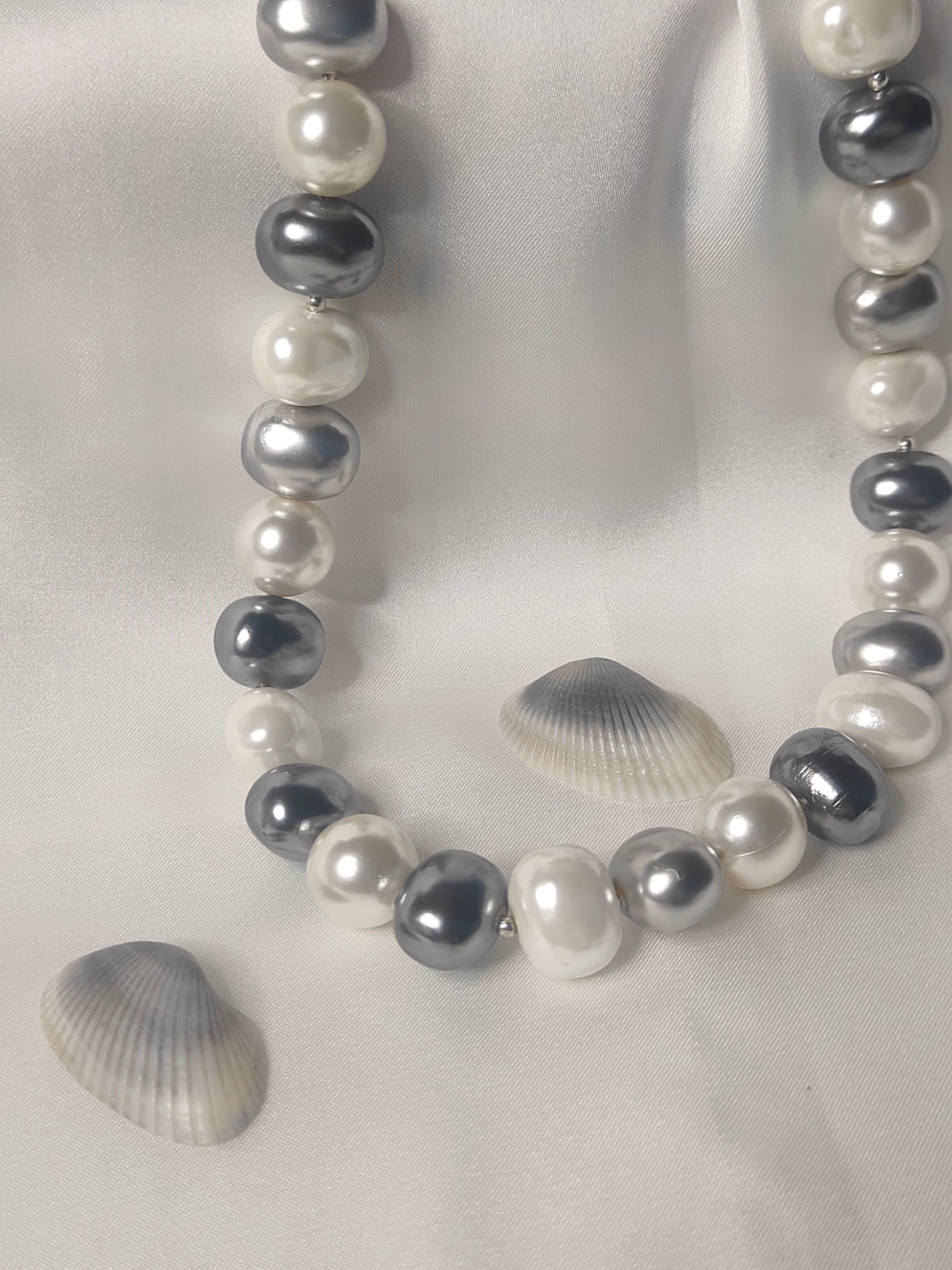 PSP001- Moonlight Mirage- white and grey shell pearl necklace