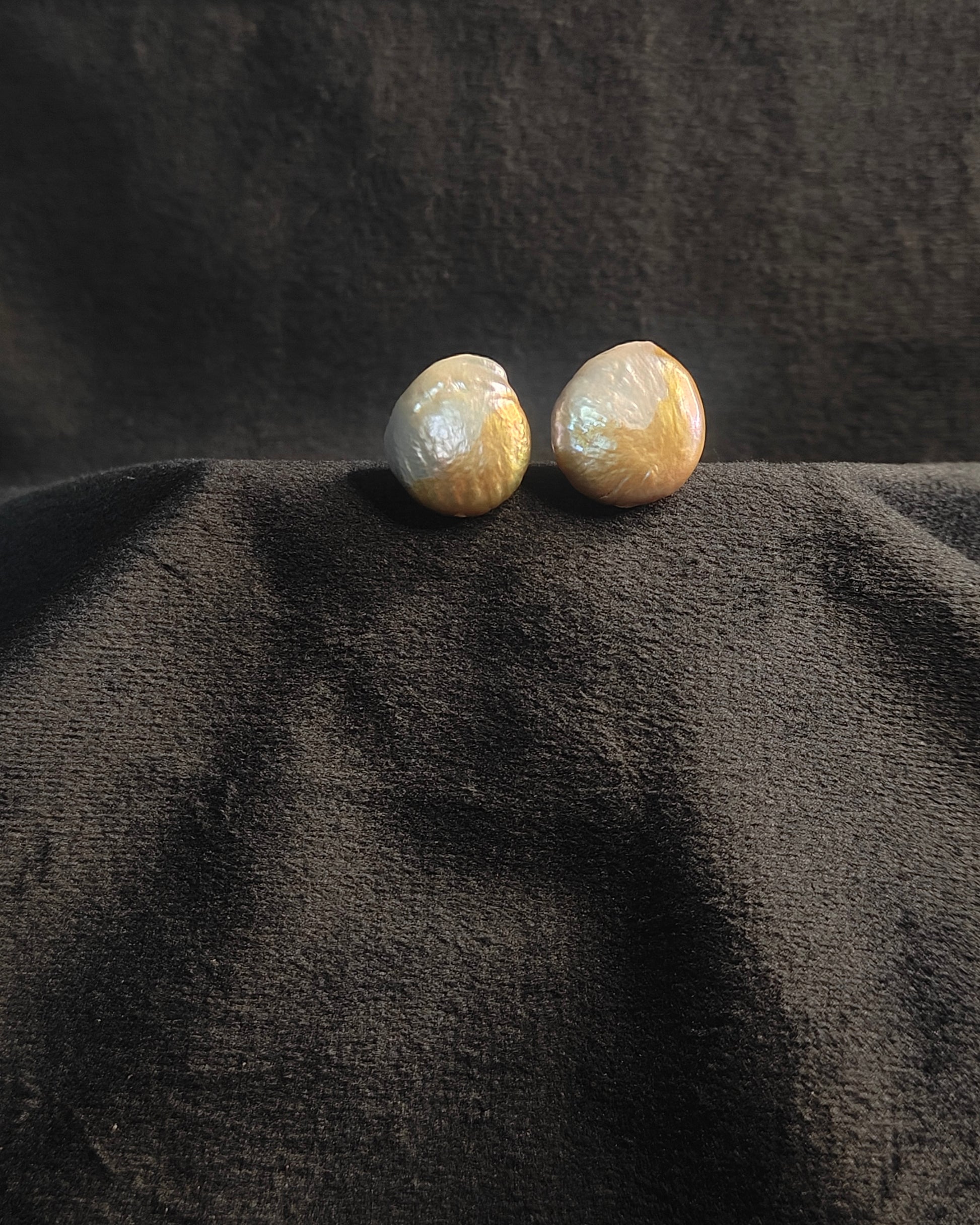 ERPFW019- unique grey and golden toned coin pearl studs Earrings with sterling silver 925