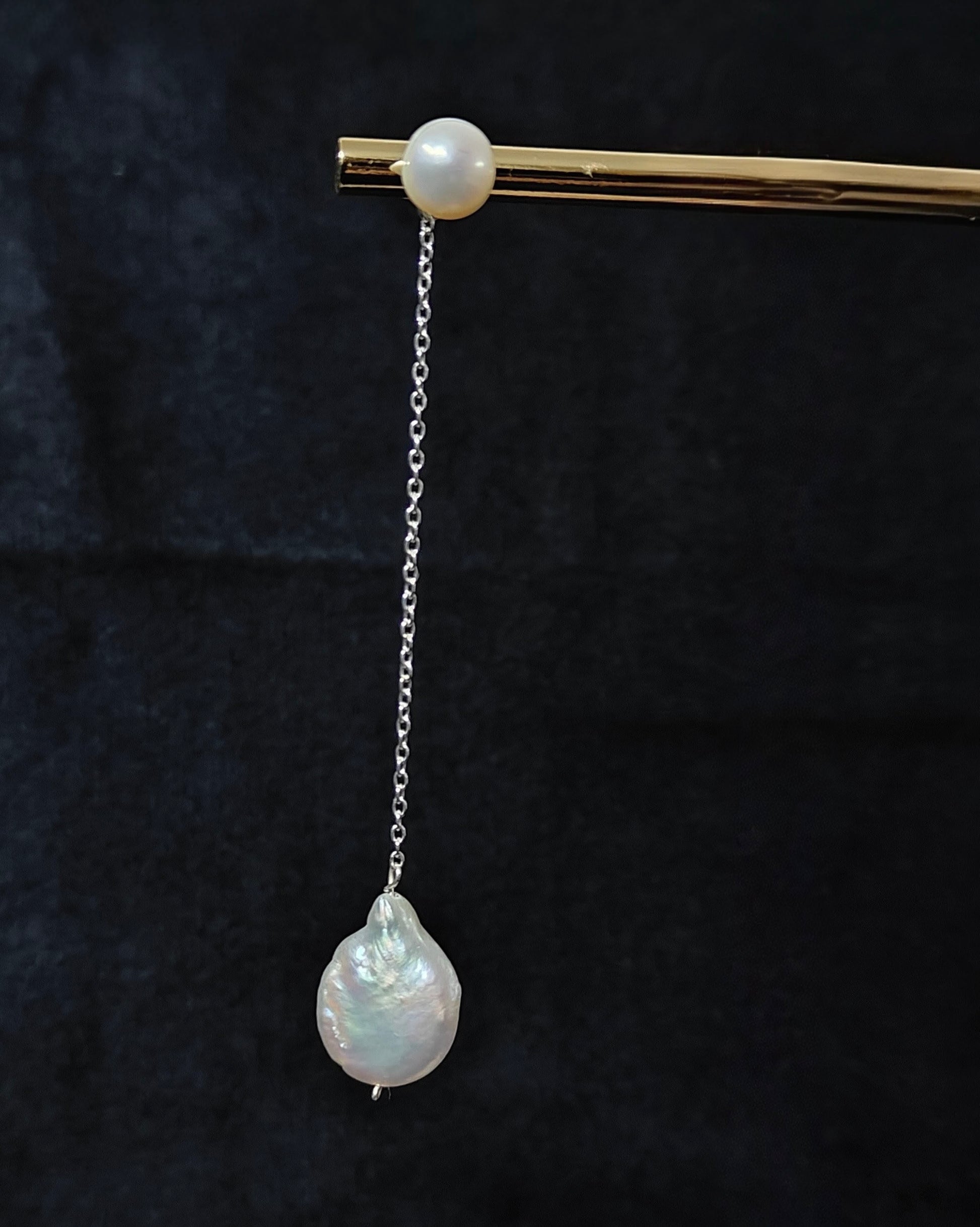 ERPFW020- Stylish & Statement- Baroque pearl drop earrings with sterling silver chain