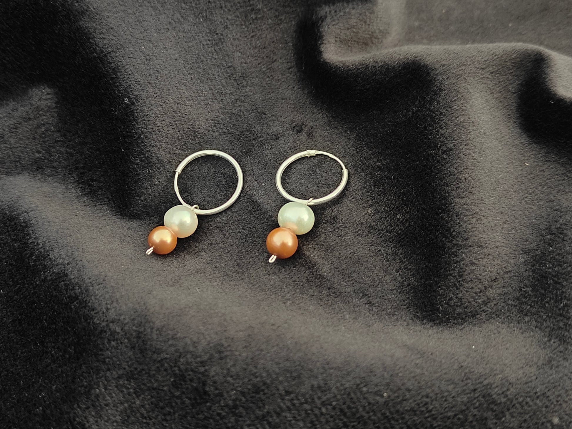 ERPFW023- Elegant & Classy Copper-White Pearl & Silver Hoops Earrings ( sterling Silver 925 Hoops)